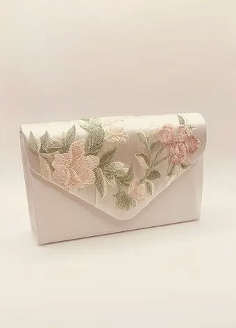 Embroidered Flower Wedding Clutch: Ivory, Blush Pink, Sage Green