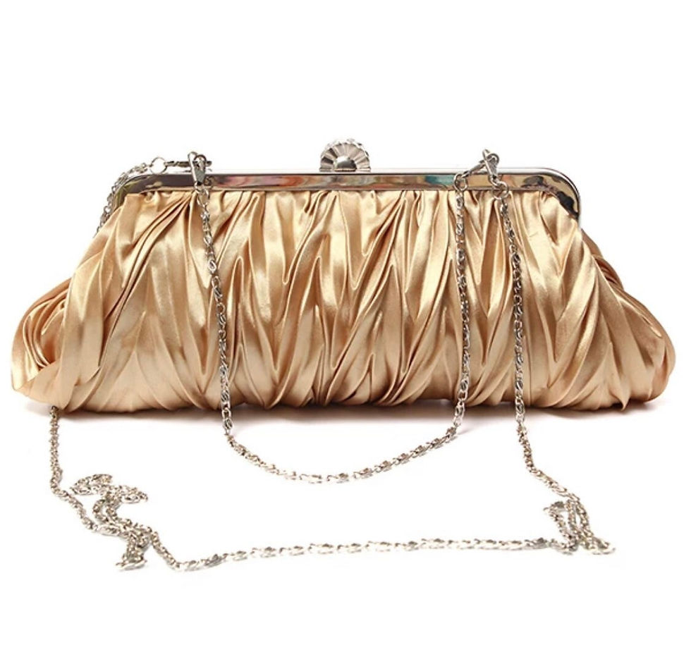 Stunning Bridal Gold Satin Diamanté Detail Clutch Bag