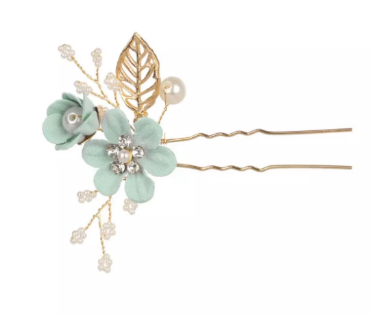 Simply Beautiful Soft Blue with Gold Bridal Hair Pin