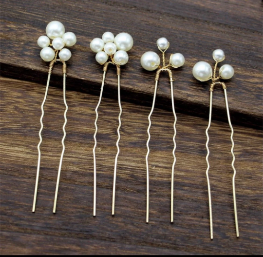 Simply Beautiful Set of 5 Gold Pearl Bridal Hair Accessories