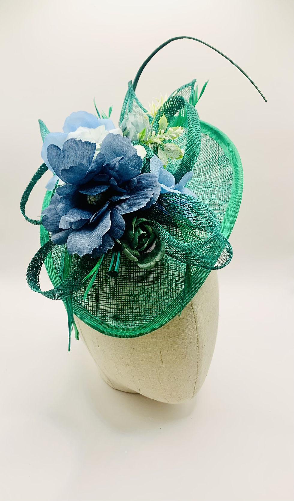 Floral Wedding Fascinator Hat: Green, Mint, and Cornflower Blue