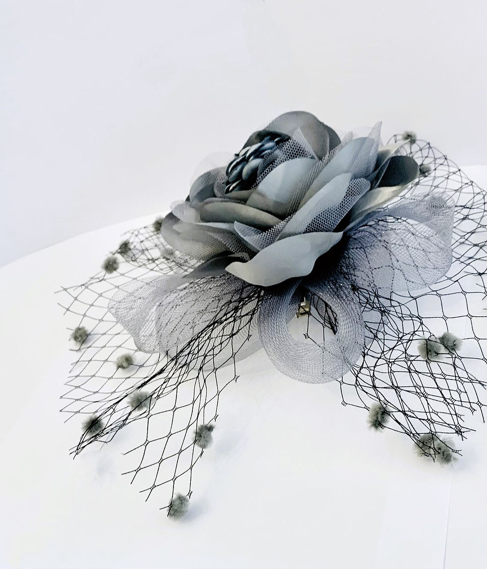 Stunning Hand Finished Silver Grey & Diamante Flower Wedding Bridal Fascinator